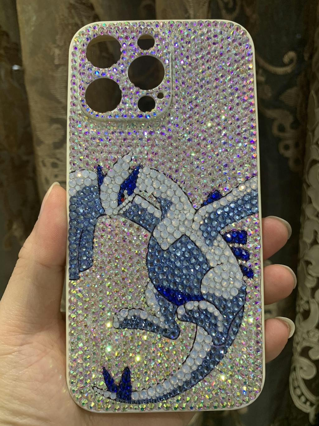 The phone case is 100% handcrafted with the highest quality rhinestones in different sizes. Please allow 8-10 days for production.